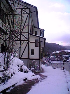 大雪の中の露天風呂。上を見るとすいこまれそうでした。